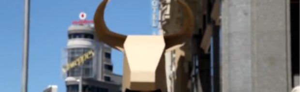 Pues exactamente eso es lo que pasó el sábado 22 de junio. Los que fuimos minotauros durante dos horas, seguimos al pie de la letra las intrucciones de mmmm… (creadores del evento y pastores del ganado humano). Concretamente por las calles del centro de Madrid: Gran Vía, Fuencarral, Preciados, El Carmen, Sol… Nosotros participamos con el colectivo creativo ofreciendo nuestro paso firme y decidido, y porqué no reconocerlo, algo de vergüenza.